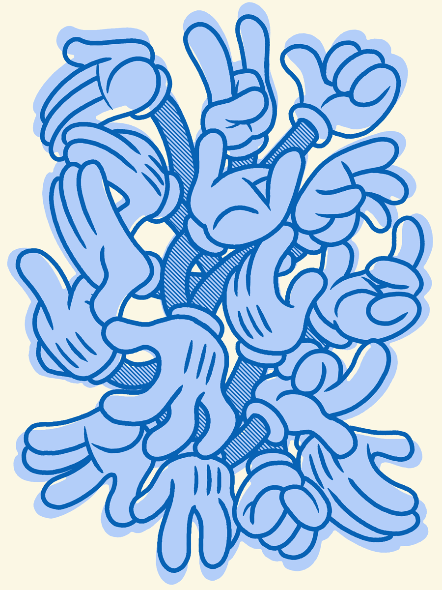 is an animation cleanup artist at Titmouse in NYC. His work for Printmouse plays with the visual style of old, often xerox made, band flier art.