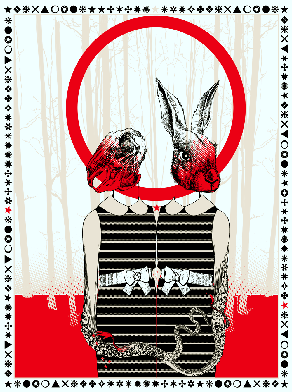 is an assistant animator at Titmouse, NYC. Zan is an avid fan of the fantasy and sci-fi genres and is particularly fond of the spirited, oft unusual creatures that inhabit these worlds. Since childhood she has been fascinated by animals, imaginary and of our natural world, and finds herself constantly incorporating them into her art. Zan’s limited edition silkscreen print for Printmouse is inspired by traditional Indian designs with subtle stylistic and thematic influences from the film adaptation of Watership Down.
