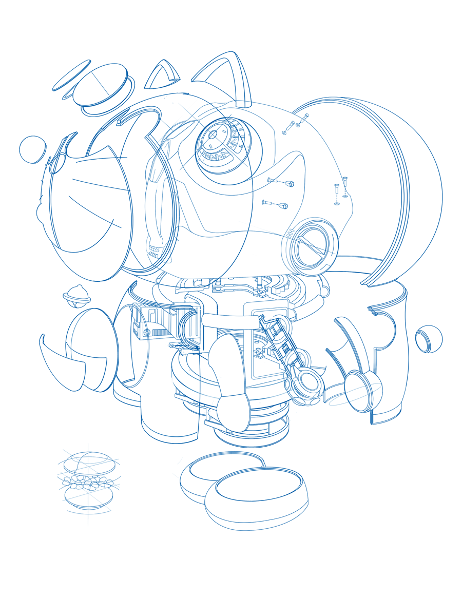 Mark Taihei is an LA based artist who was recently employed as a background artist on the animated series Motorcity. Raised by his traditional Japanese parents, Mark has been drawn to both Western and Eastern pop culture imagery from an early age. Here is a sneak peak of his limited edition silkscreen print, inspired by his need to understand the inner mechanics of the comic book character Doraemon, a time traveling robot cat from the future.