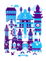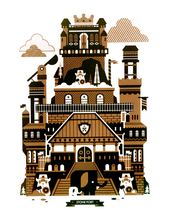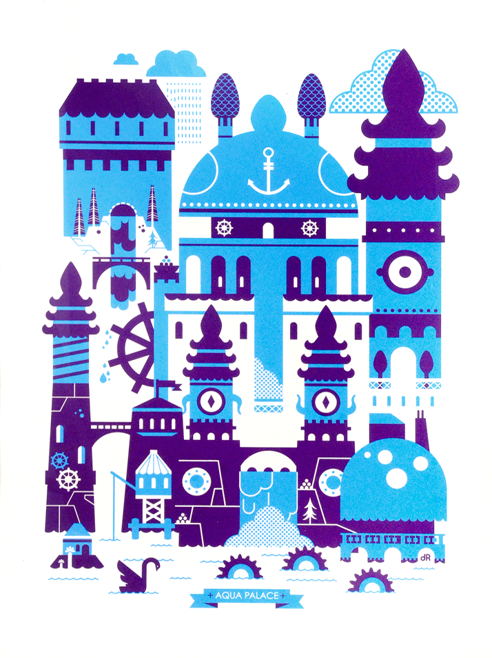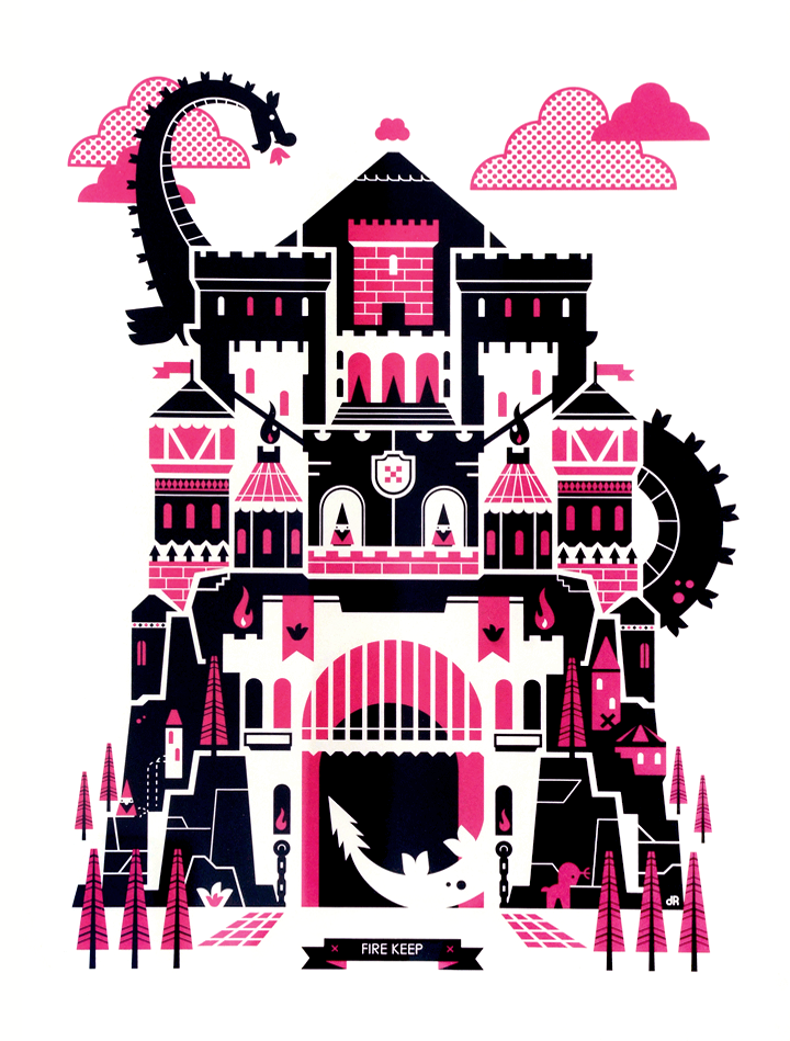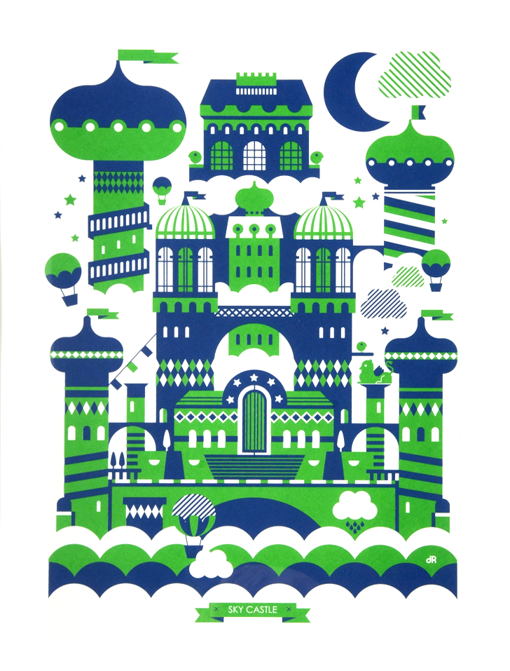 Derek Rippe Aqua Palace Silkscreen, Edition of 50 18 x 24 Inches | Derek Rippe Stone Fort Silkscreen, Edition of 50 18 x 24 Inches | Derek Rippe Sky Castle Silkscreen, Edition of 50 18 x 24 Inches | Derek Rippe Fire Keep Silkscreen, Edition of 50 18 x 24 Inches | |||||