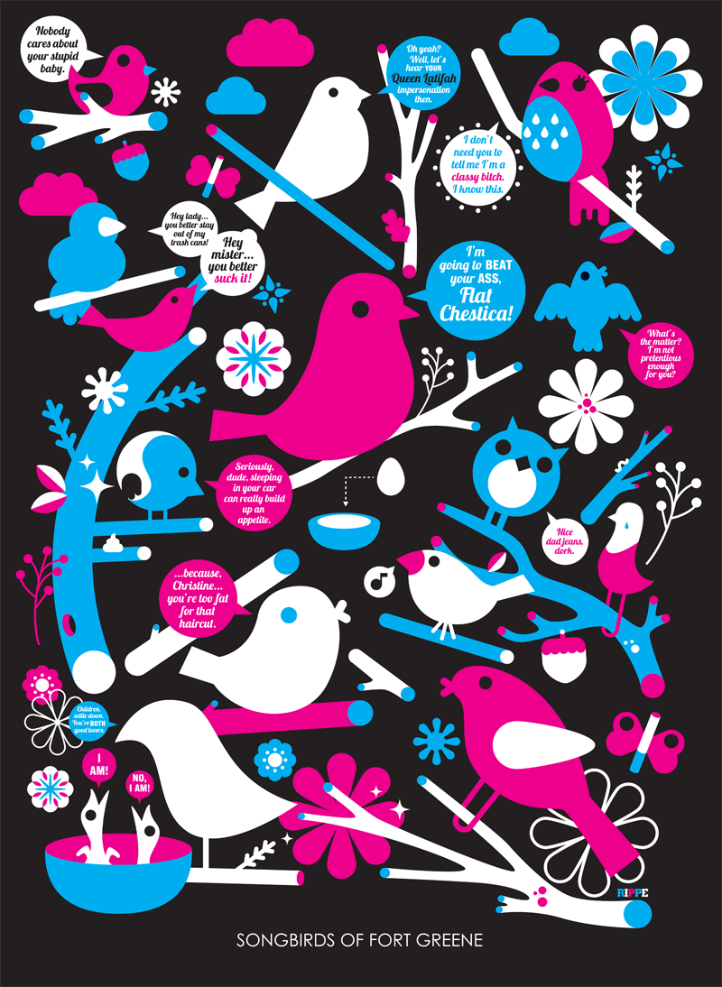 Derek Rippe Birds of Ft Greene Silkscreen Print 18 x 24 Inches Edition of 50 |